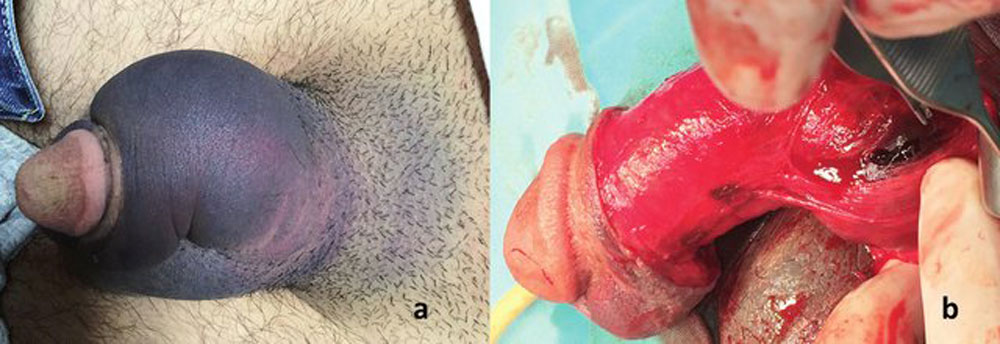 Go to either your Urologist, your doctor, or an emergency room right now. Don't risk death or amputation of your penis because of gangrene.